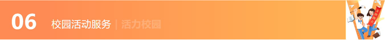校内活动:开学/毕业典礼、节日活动、开放日、艺术展演、运动会、教师团拜等。