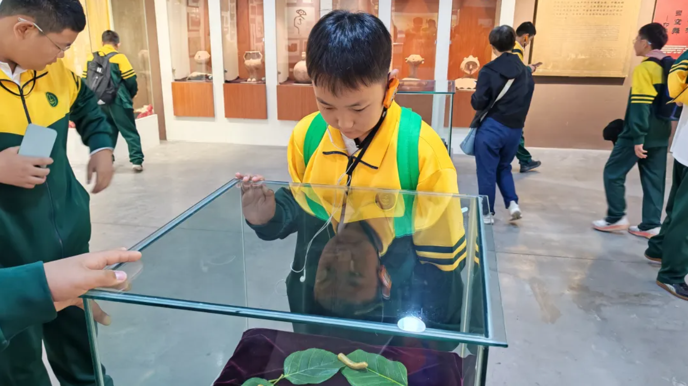 第四天,学生们走进四川丝绸博物馆,开启了一场丝绸文化的探索之旅。在馆内,大家了解了丝绸的起源、发展和制作工艺,欣赏了精美的蜀锦作品。随后,学生们亲自体验制作蜀锦织扇。学生通过穿线,绕锦,装饰等完美的制作出了一把蜀锦扇,此次活动让学生们感受到了传统手工艺的魅力和匠人的辛勤付出。