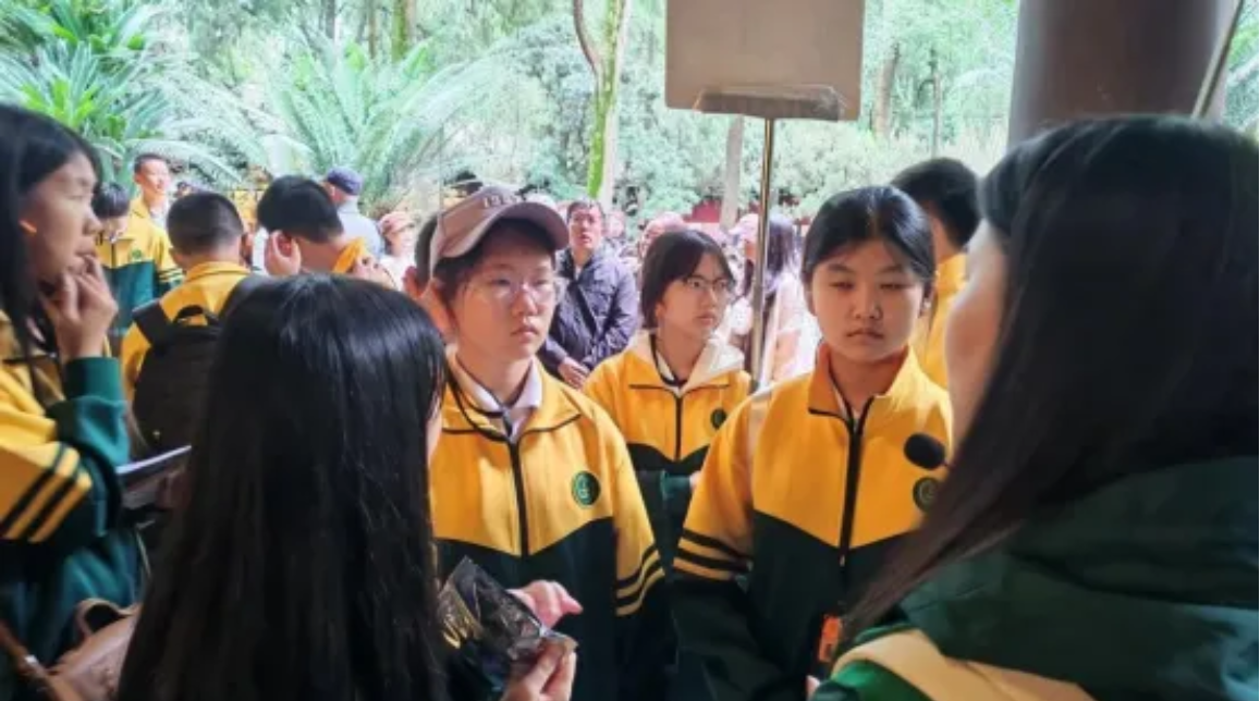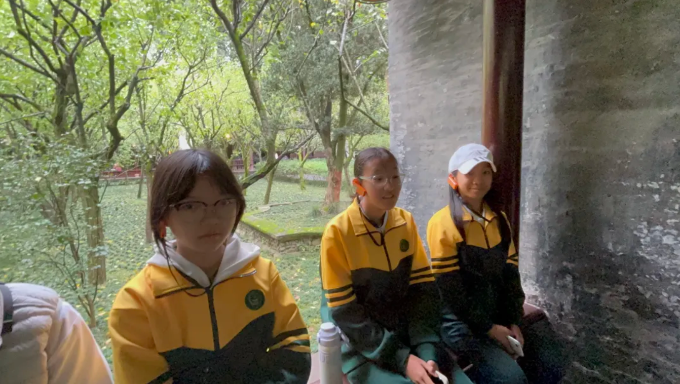 研学首日,学生们踏入杜甫草堂。古朴的茅屋、葱郁的竹林、潺潺的流水,仿佛将大家带回了那个“安得广厦千万间,大庇天下寒士俱欢颜”的时代。在研学老师的讲解下,学生们深入了解杜甫的生平与诗作,感受他心系苍生、忧国忧民的伟大情怀。漫步于诗史堂,欣赏着历代文人墨客留下的诗词碑刻,学生们纷纷吟诵起杜甫的经典诗篇,在朗朗书声中,与诗圣进行了一场跨越时空的对话。